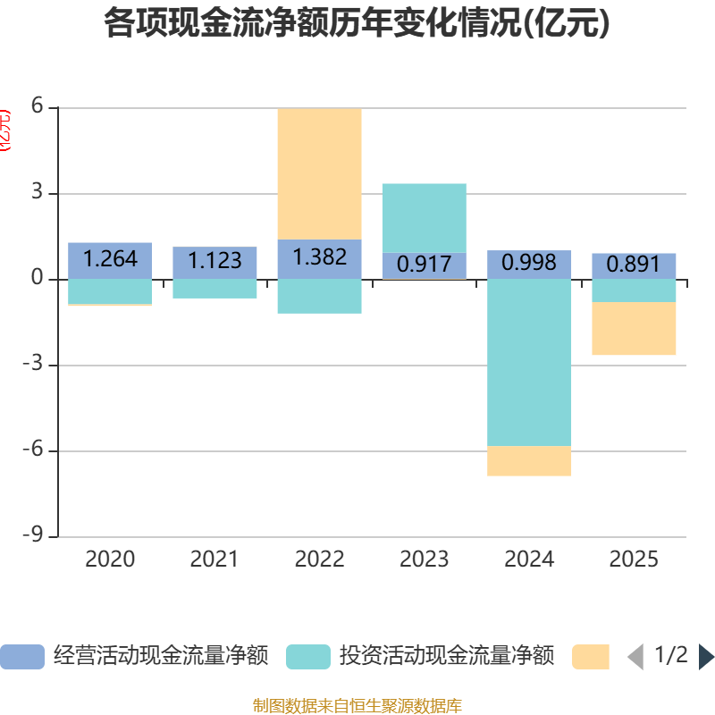 截至2025年,公司经营活动现金流净额为8914.67万元,同比下降10.64%;筹资活动现金流净额-1.85亿元,同比减少8045.45万元;投资活动现金流净额-8138.12万元,上年同期为-5.85亿元。