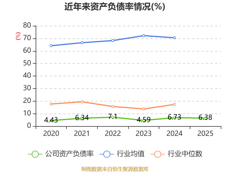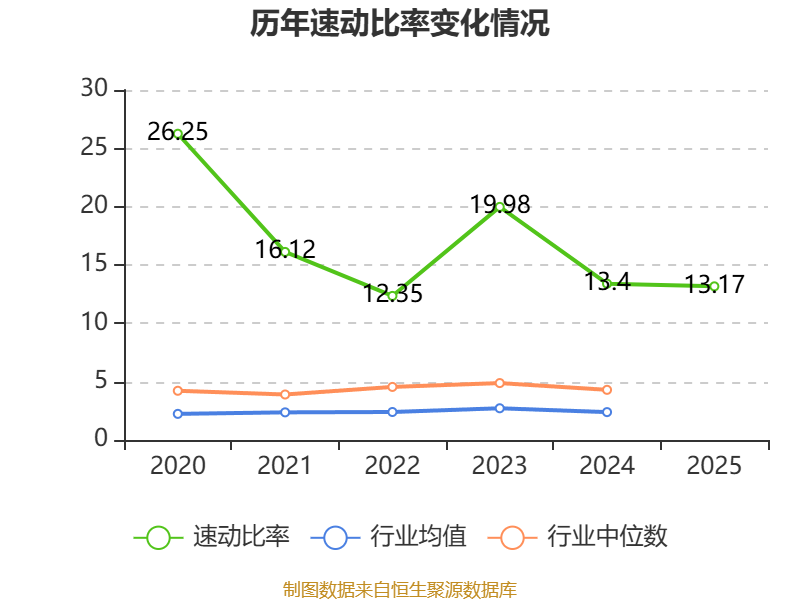 2025年,公司流动比率为14.34,速动比率为13.17。