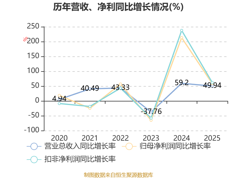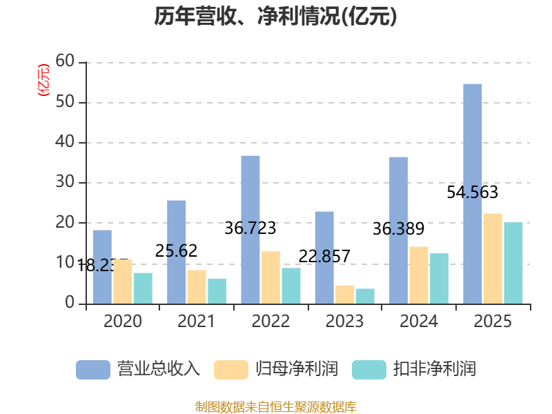 中证智能财讯澜起科技(688008)3月31日披露2025年年度报告。2025年,公司实现营业总收入54.56亿元,同比增长49.94%;归母净利润22.36亿元,同比增长58.35%;扣非净利润20.22亿元,同比增长61.95%;经营活动产生的现金流量净额为20.22亿元,同比增长19.55%;报告期内,澜起科技基本每股收益为1.97元,加权平均净资产收益率为18.25%。公司2025年度分配预案为:拟向全体股东每10股派现3.9元(含税)。