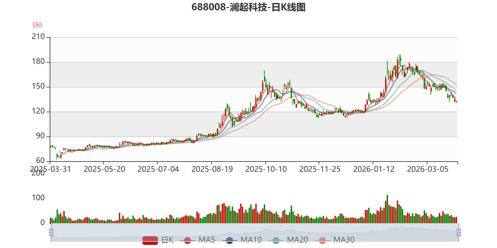以3月30日收盘价计算,澜起科技目前市盈率(TTM)约为72.17倍,市净率(LF)约12.48倍,市销率(TTM)约29.57倍。