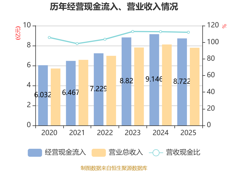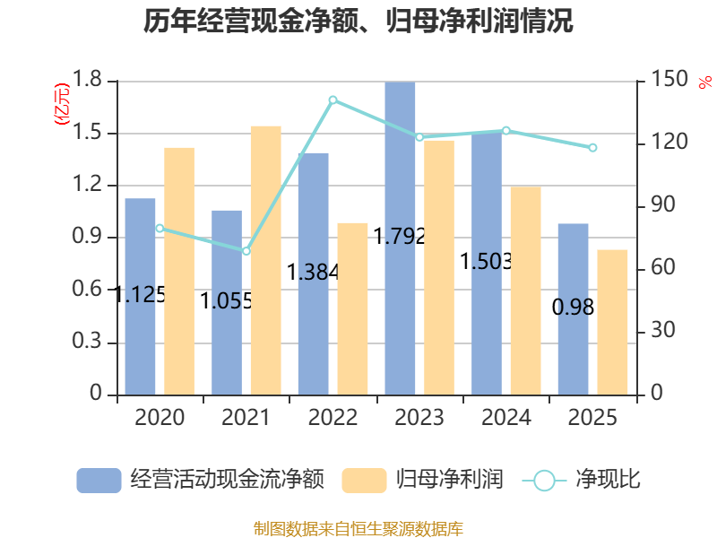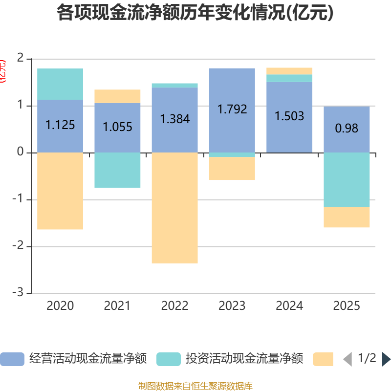 截至2025年,公司经营活动现金流净额为9795.9万元,同比下降34.83%;筹资活动现金流净额-4312.87万元,同比减少5743.75万元;投资活动现金流净额-1.17亿元,上年同期为1613.16万元。