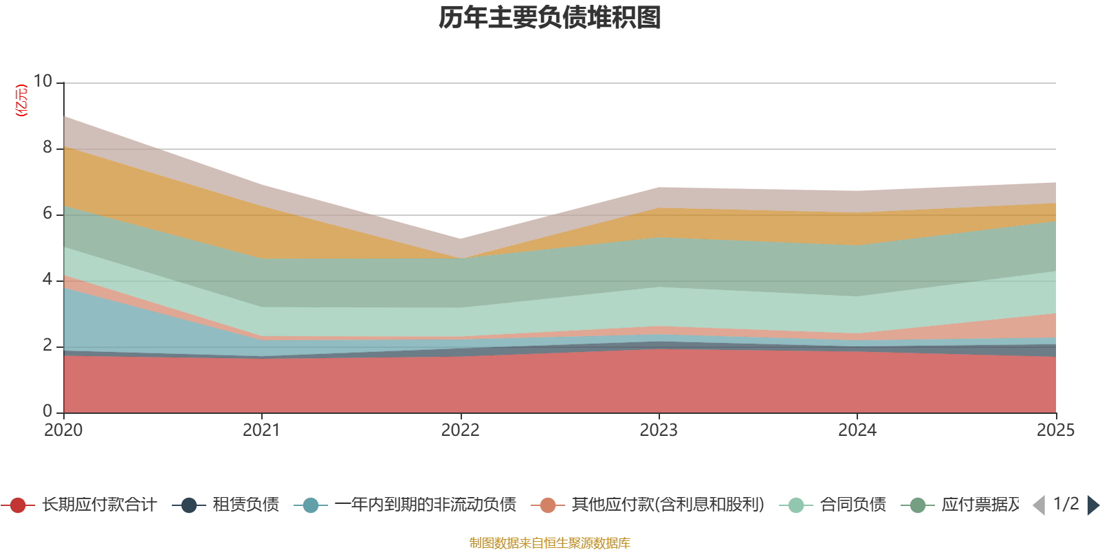 负债重大变化方面,截至2025年末,公司其他应付款(含利息和股利)较上年末增加258.95%,占公司总资产比重上升1.21个百分点;短期借款较上年末减少45%,占公司总资产比重下降1.07个百分点;租赁负债较上年末增加144.68%,占公司总资产比重上升0.51个百分点;长期应付款合计较上年末减少8.58%,占公司总资产比重下降0.43个百分点。