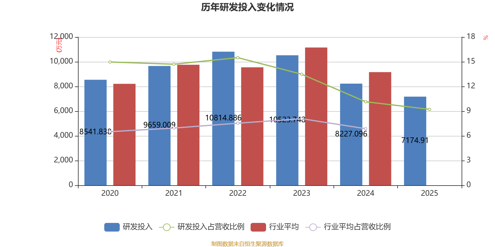 2025年全年,公司研发投入金额为7174.91万元,同比下降12.79%;研发投入占营业收入比例为9.22%,相比上年同期下降0.92个百分点。此外,公司全年研发投入资本化率为31.77%。