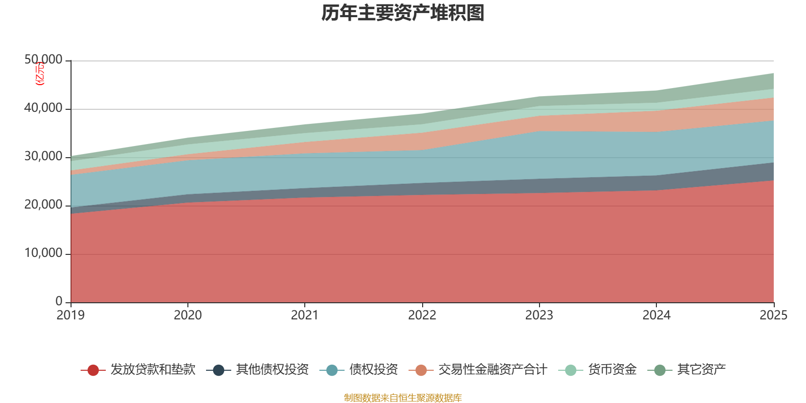 资产重大变化方面,截至2025年末,公司债权投资较上年末减少3.46%,占公司总资产比重下降2.22个百分点;买入返售金融资产较上年末增加182.52%,占公司总资产比重上升1.15个百分点;其他债权投资较上年末增加20.28%,占公司总资产比重上升0.78个百分点;衍生金融资产较上年末减少66.86%,占公司总资产比重下降0.32个百分点。