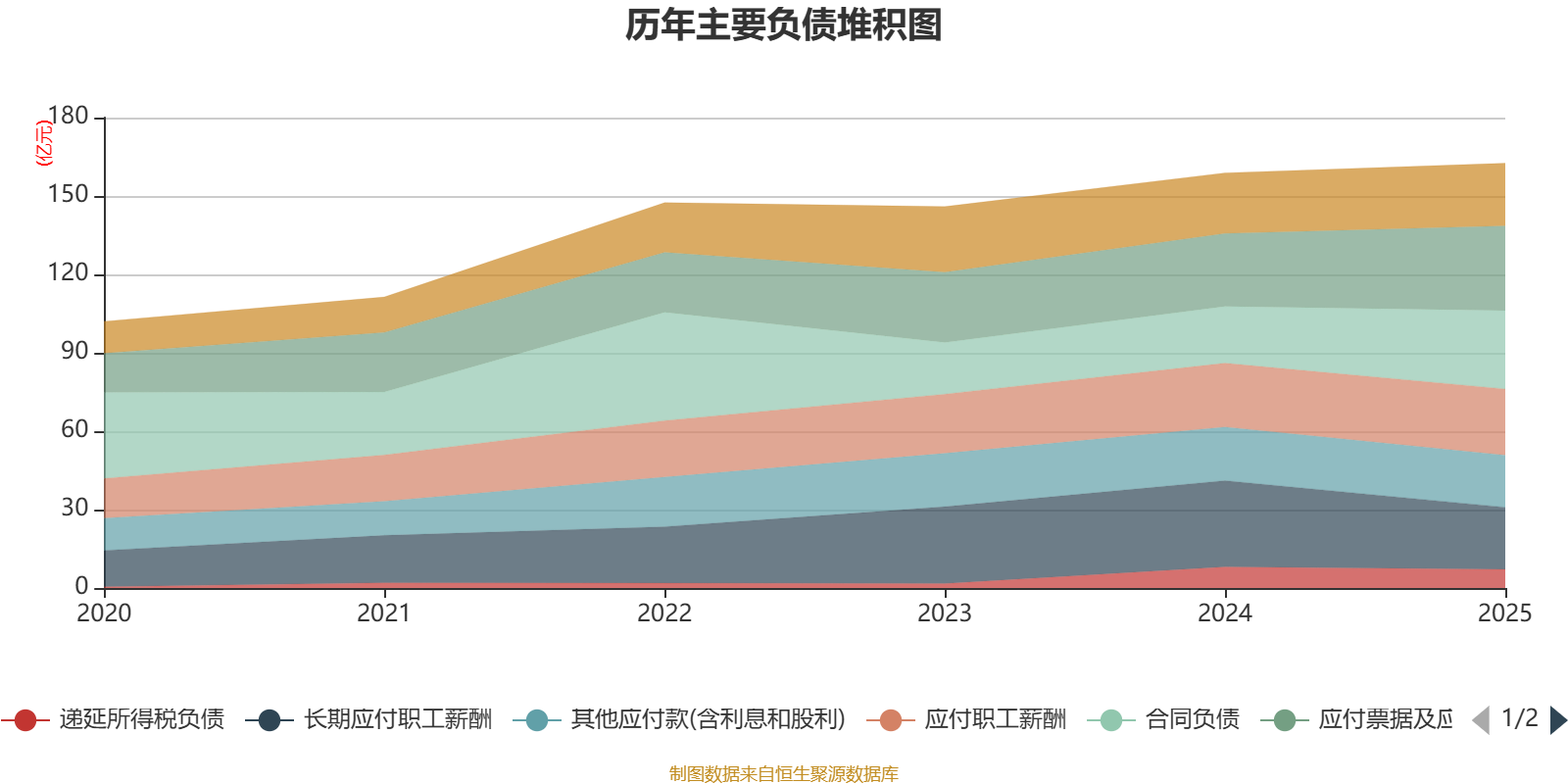 负债重大变化方面,截至2025年末,公司长期应付职工薪酬较上年末减少27.97%,占公司总资产比重下降1.81个百分点;合同负债较上年末增加38.55%,占公司总资产比重上升1.24个百分点;应付票据及应付账款较上年末增加16.11%,占公司总资产比重上升0.54个百分点;其他应付款(含利息和股利)较上年末减少2.73%,占公司总资产比重下降0.26个百分点。
