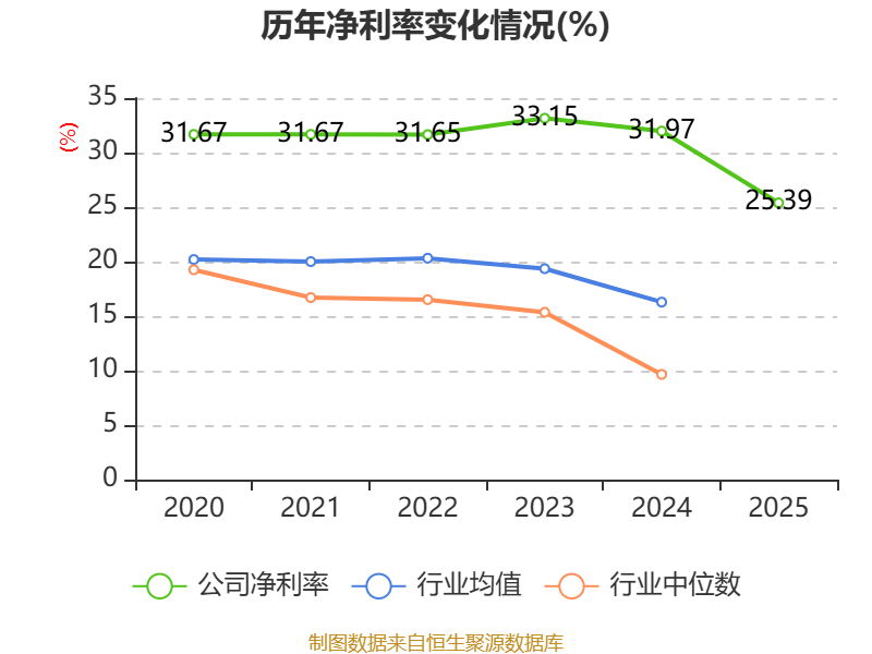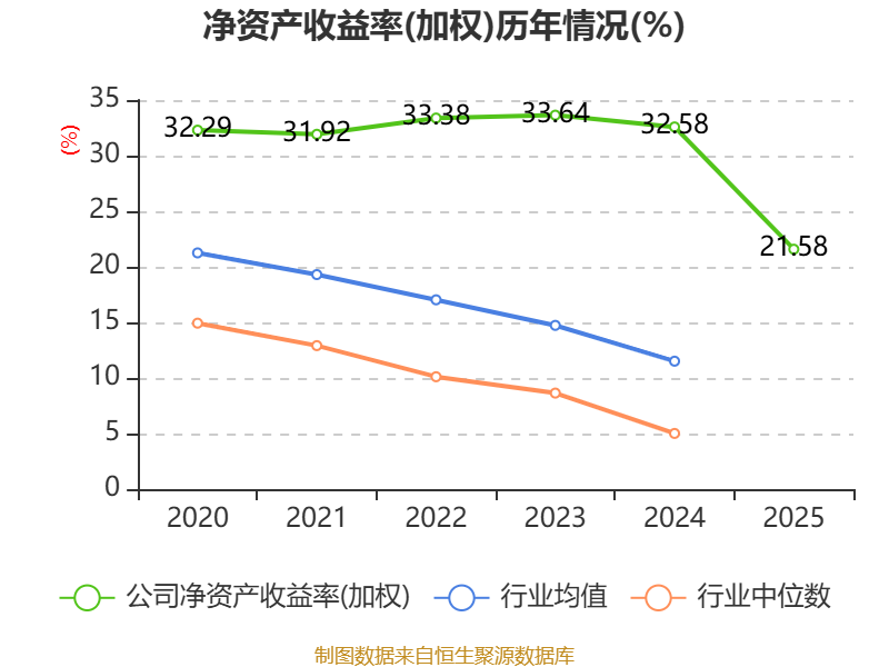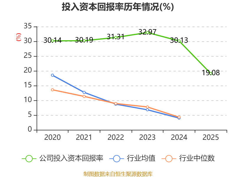 数据显示,2025年公司加权平均净资产收益率为21.58%,较上年同期下降11个百分点。公司2025年投入资本回报率为19.08%,较上年同期下降11.05个百分点。