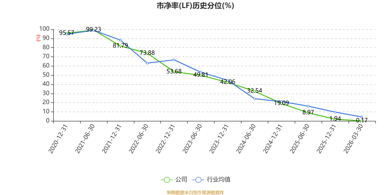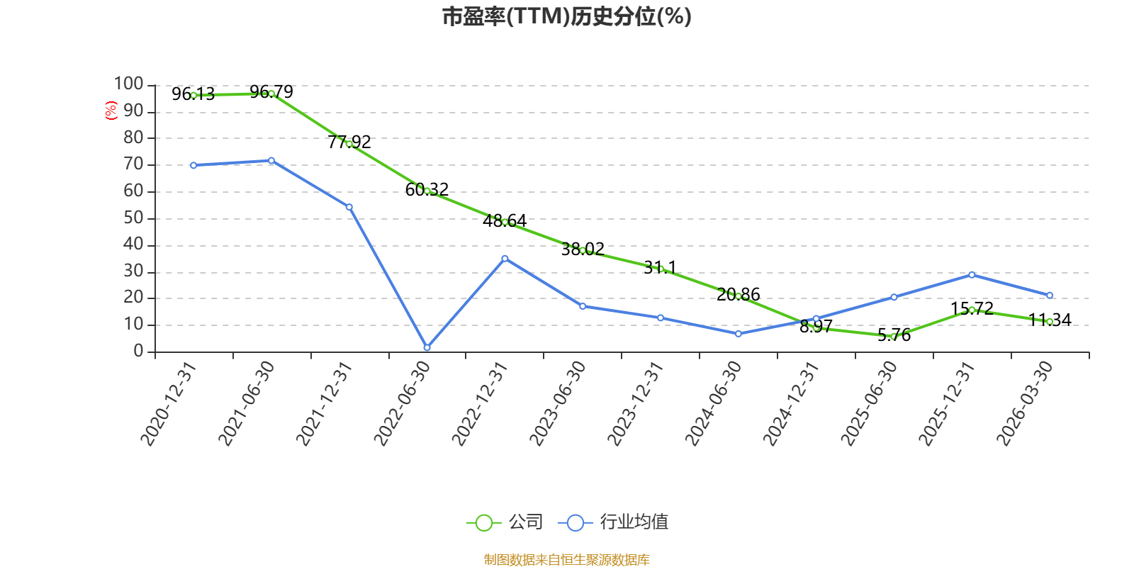 市盈率、市净率为负时,不显示当期分位数,会导致折线图中断。