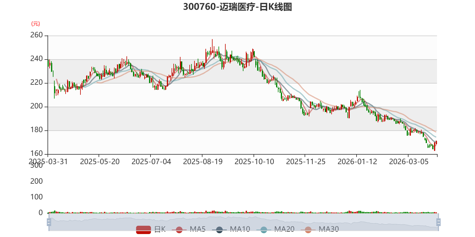 以3月30日收盘价计算,迈瑞医疗目前市盈率(TTM)约为25.45倍,市净率(LF)约5.44倍,市销率(TTM)约6.22倍。