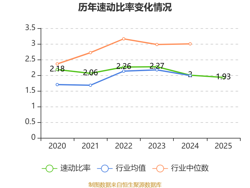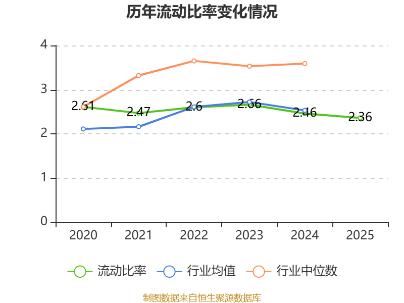 2025年,公司流动比率为2.36,速动比率为1.93。