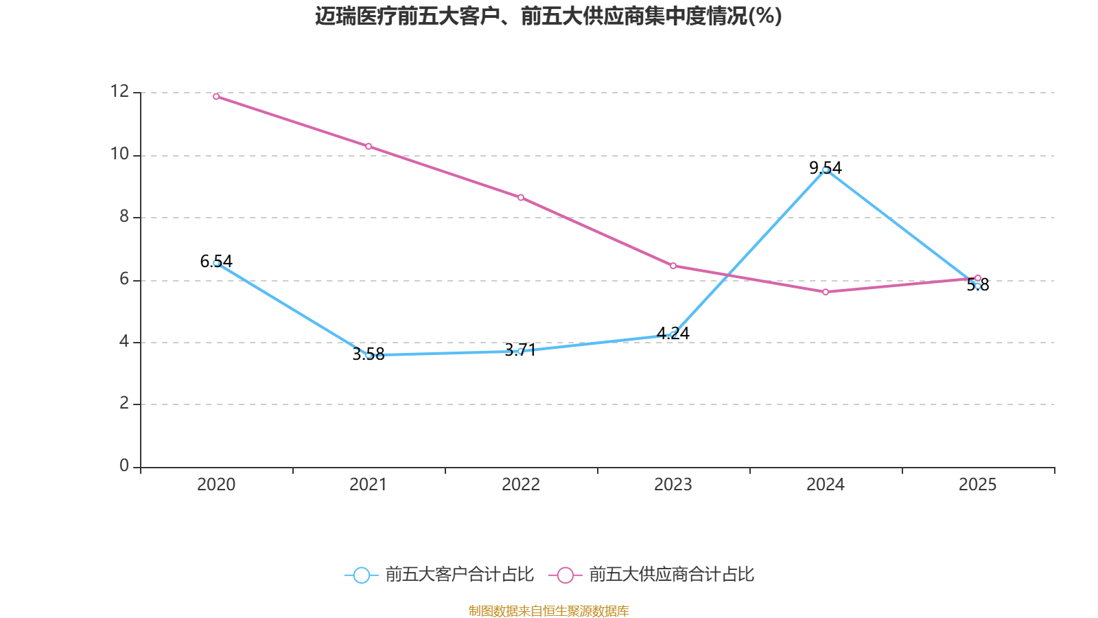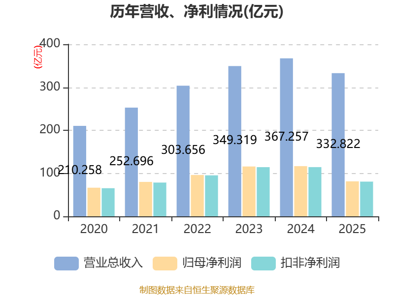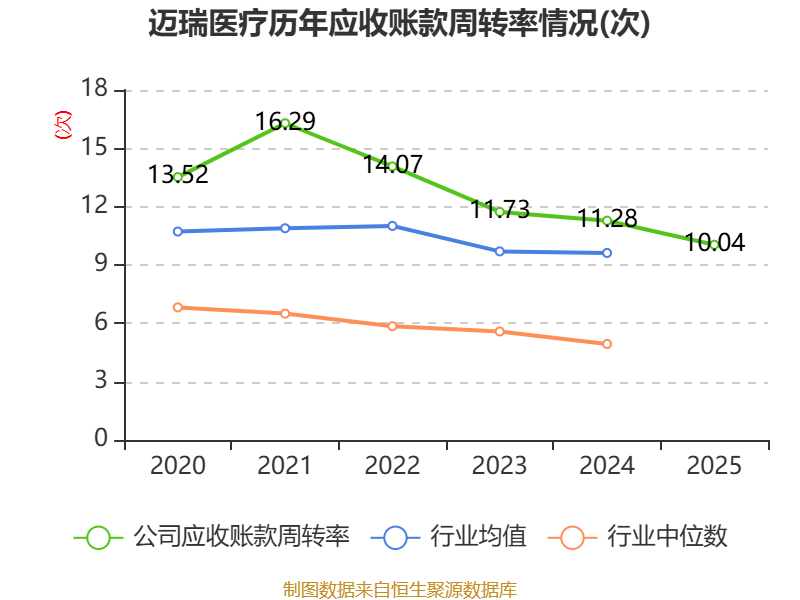 中证智能财讯迈瑞医疗(300760)3月31日披露2025年年度报告。2025年,公司实现营业总收入332.82亿元,同比下降9.38%;归母净利润81.36亿元,同比下降30.28%;扣非净利润80.69亿元,同比下降29.48%;经营活动产生的现金流量净额为101.45亿元,同比下降18.40%;报告期内,迈瑞医疗基本每股收益为6.7147元,加权平均净资产收益率为21.58%。公司2025年度分配预案为:拟向全体股东每10股派现3.1元(含税)。