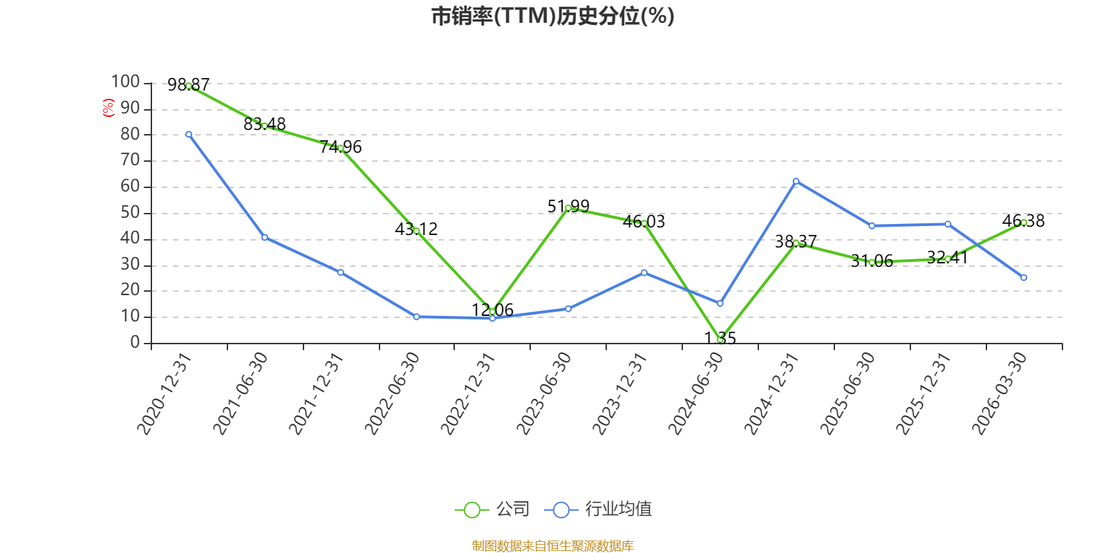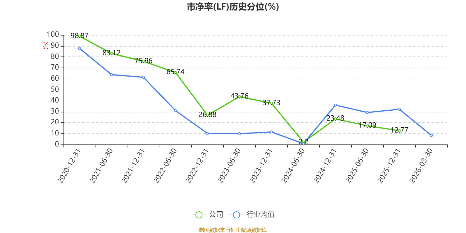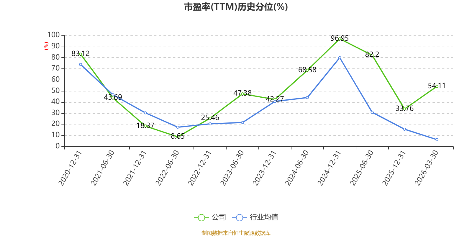 市盈率、市净率为负时,不显示当期分位数,会导致折线图中断。