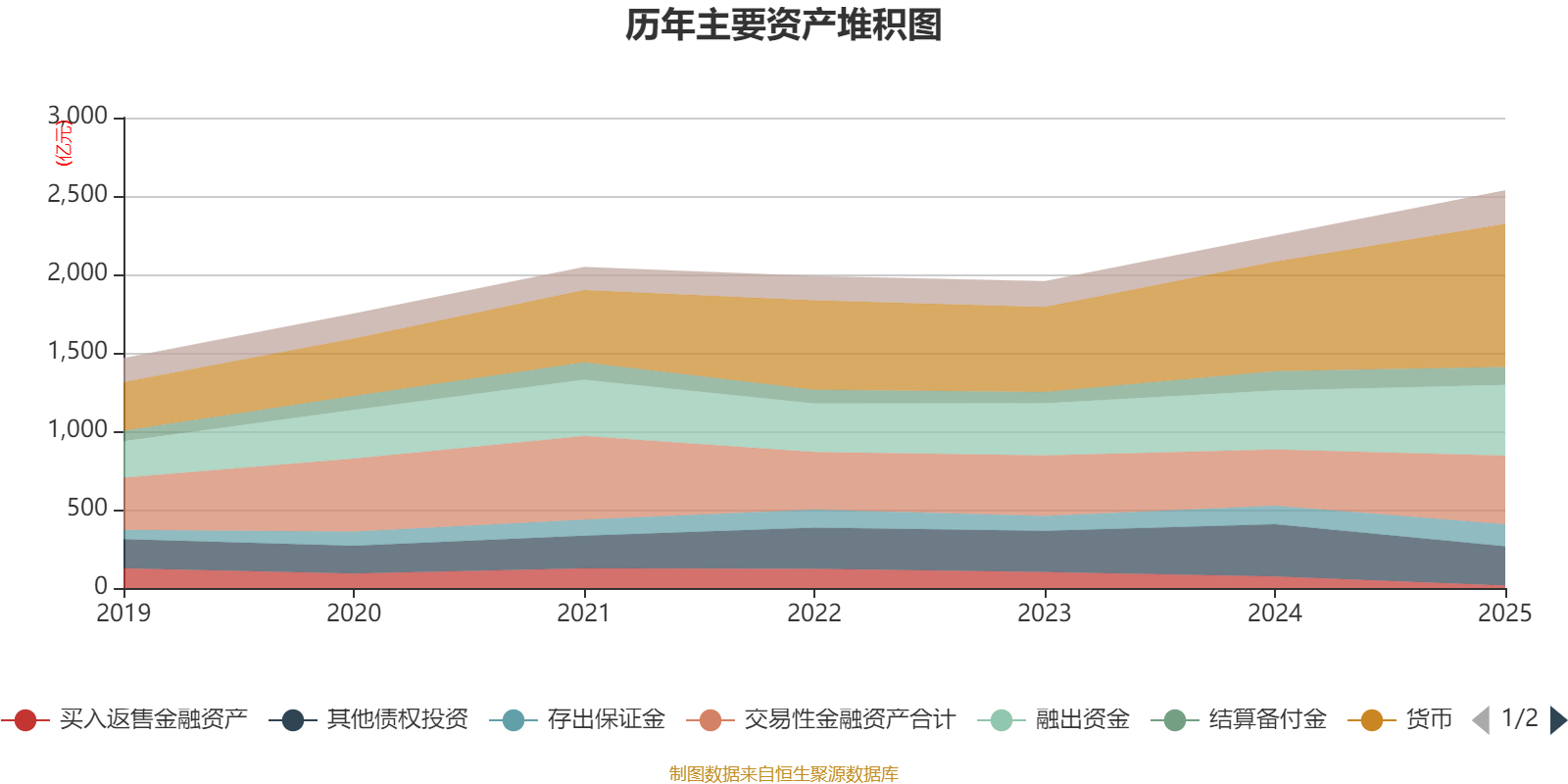 资产重大变化方面,截至2025年末,公司其他债权投资较上年末减少24.84%,占公司总资产比重下降4.95个百分点;货币资金较上年末增加30.7%,占公司总资产比重上升4.92个百分点;买入返售金融资产较上年末减少79.43%,占公司总资产比重下降2.68个百分点;其他权益工具投资较上年末增加215.43%,占公司总资产比重上升2.31个百分点。
