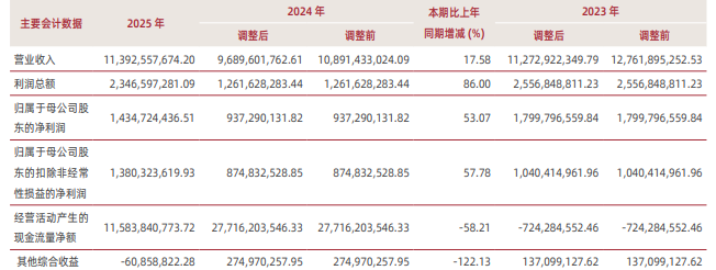 数据显示,2025年公司加权平均净资产收益率为3.32%,较上年同期上升1.18个百分点。