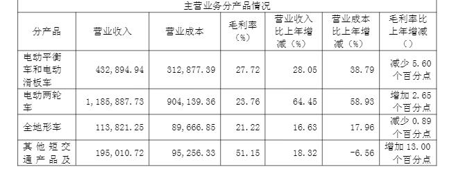从业务板块来看,九号公司旗下多项业务均保持良好增长态势。