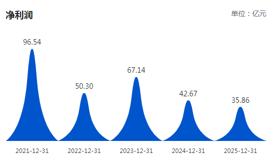 值得注意的是,2025年净利润35.86亿元、同比下降15.96%,中国中免的这一数据,不仅是公司净利创下近五年来新低,而且也是公司净利连续第二年同比双位数下滑。