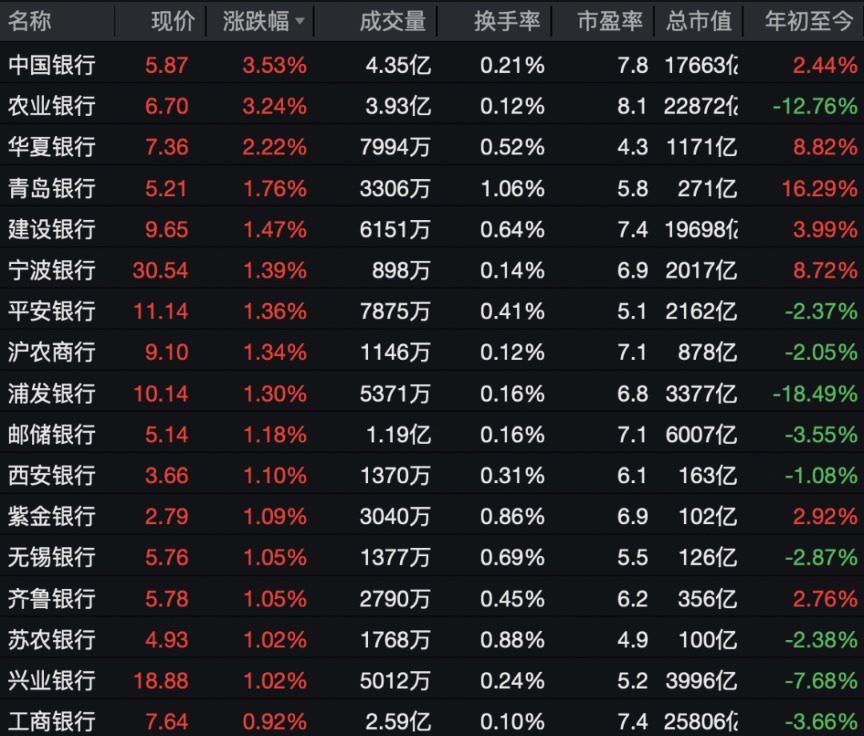 银行板块逆市活跃