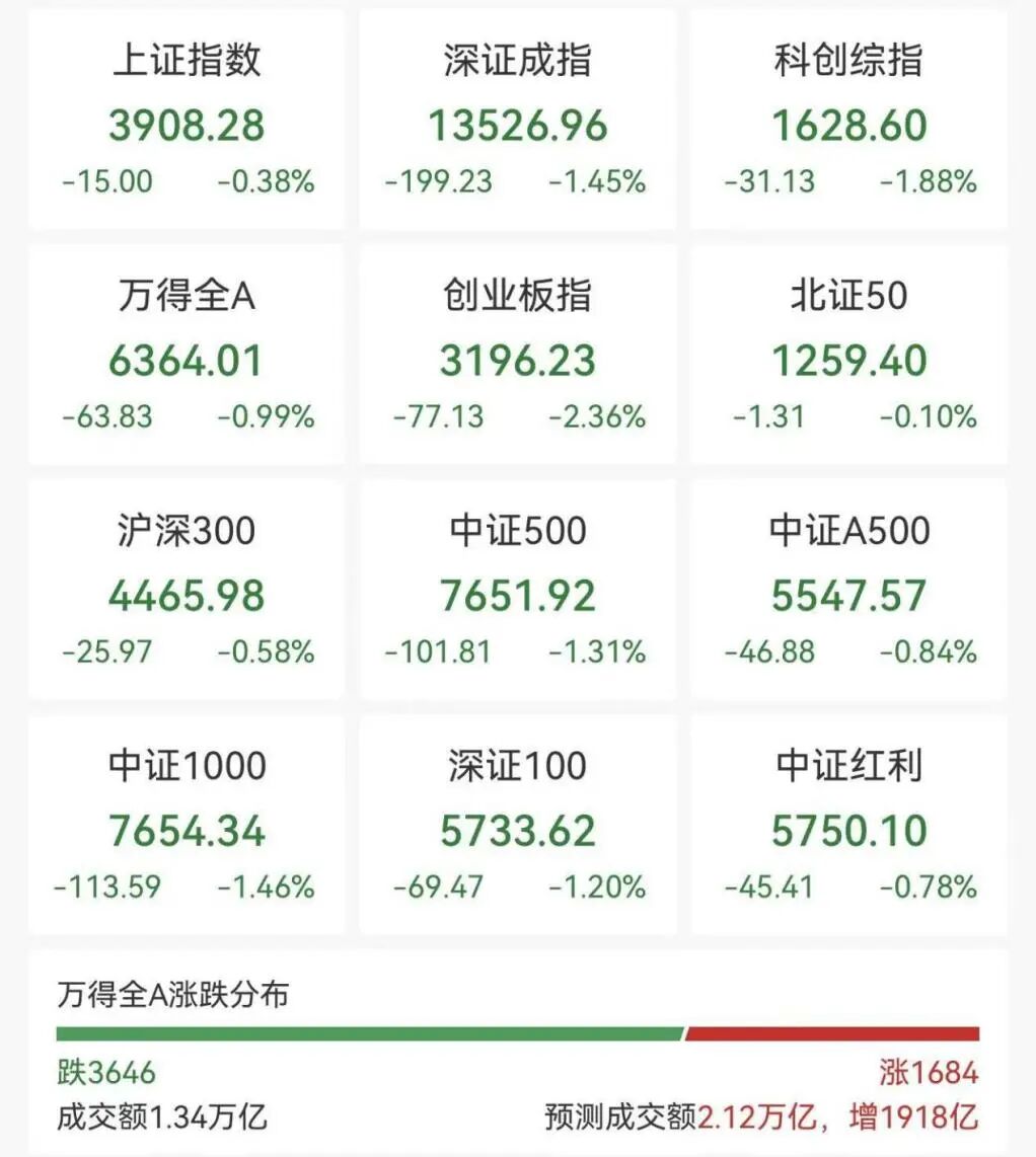 3月31日上午,A股三大指数走弱,截至午间收盘,沪指跌0.38%,深成指跌1.45%,创业板指跌2.36%。此外,科创综指跌1.88%。