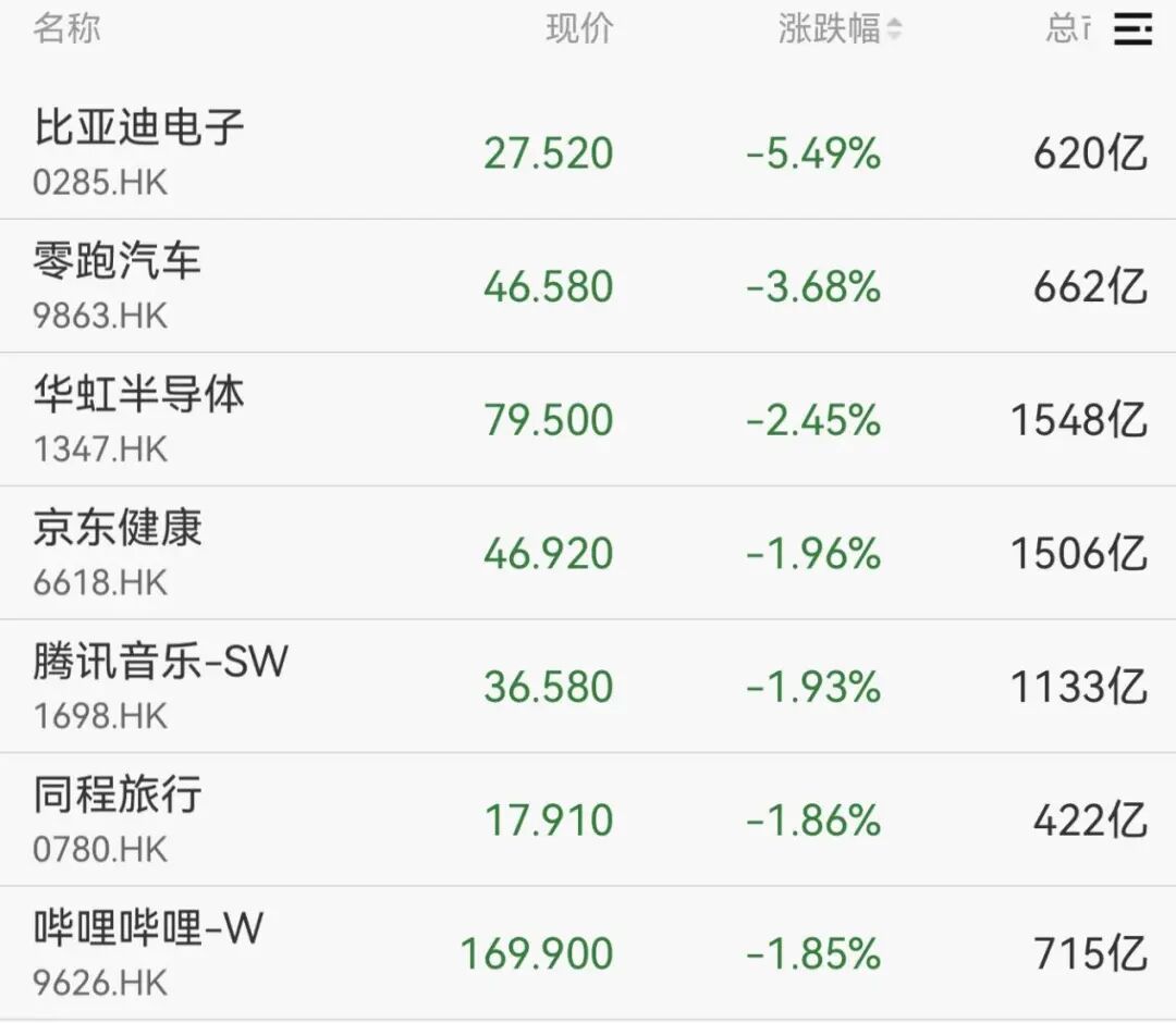 港股方面,恒生科技指数涨幅扩大,比亚迪电子、零跑汽车、华虹半导体等跌幅居前。