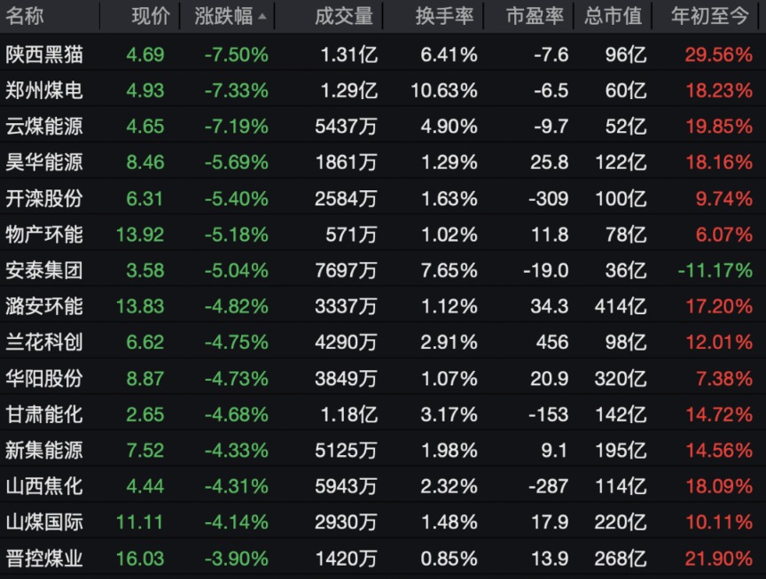 此外,煤炭、化工板块震荡调整,陕西黑猫、郑州煤电、云煤能源均跌超7%。