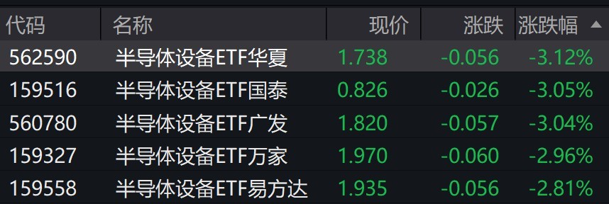 半导体设备概念股走弱,北方华创、拓荆科技、长川科技、中科飞测、安集科技、芯源微跌超3%。