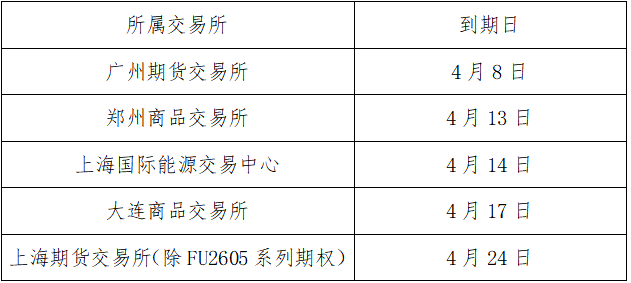 根据大连商品交易所、郑州商品交易所及广州期货交易所相关规定,不允许自然人交易者(以下简称自然人)持仓进入交割月,4月30日为相关品种2605合约自然人最后交易日。