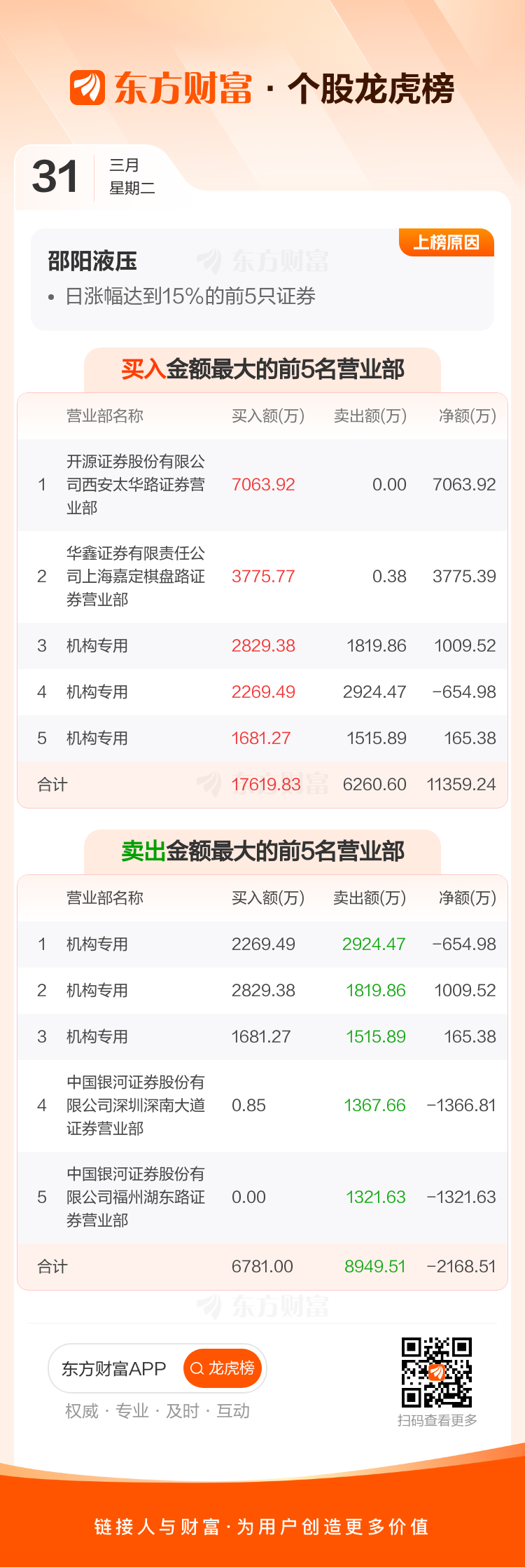 邵阳液压(301079)龙虎榜数据(03-31)
