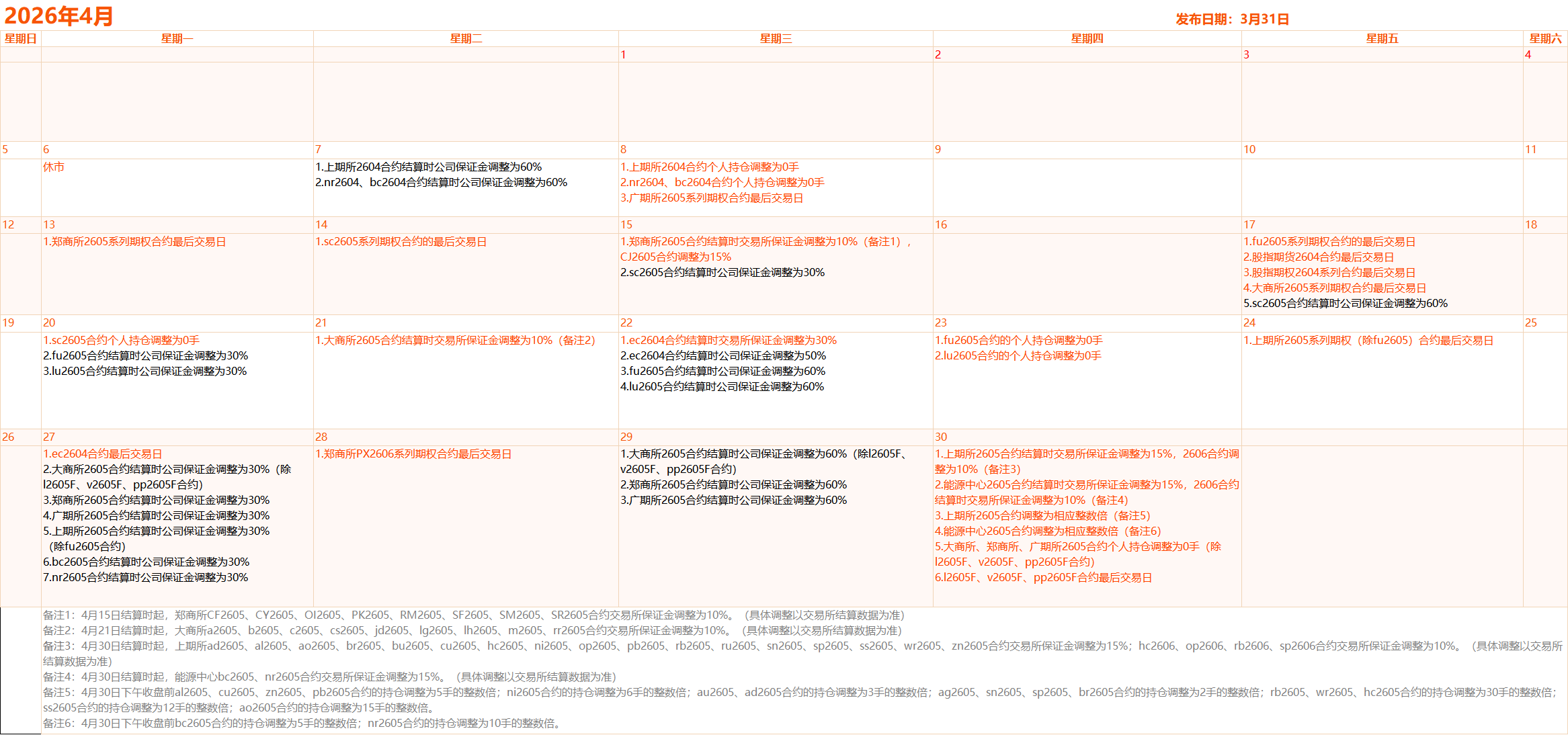 一图速览2026年4月份交易日历。