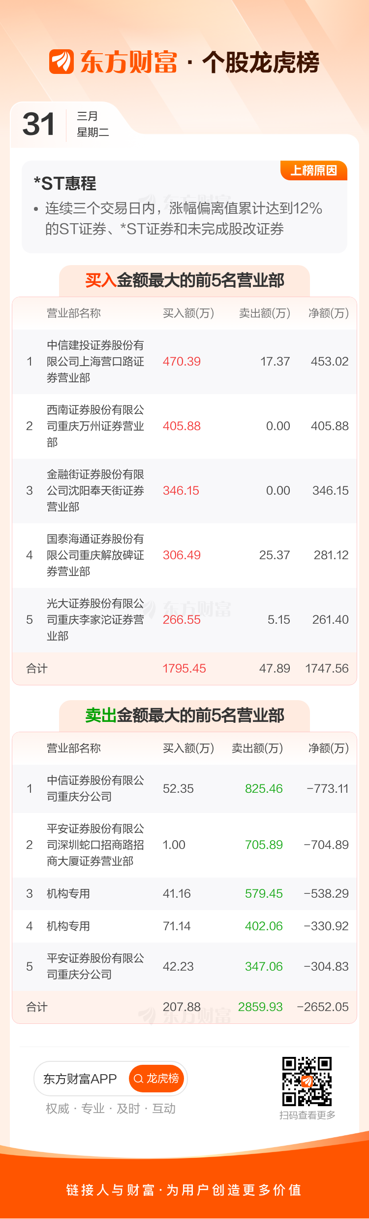 *ST惠程(002168)龙虎榜数据(03-31)
