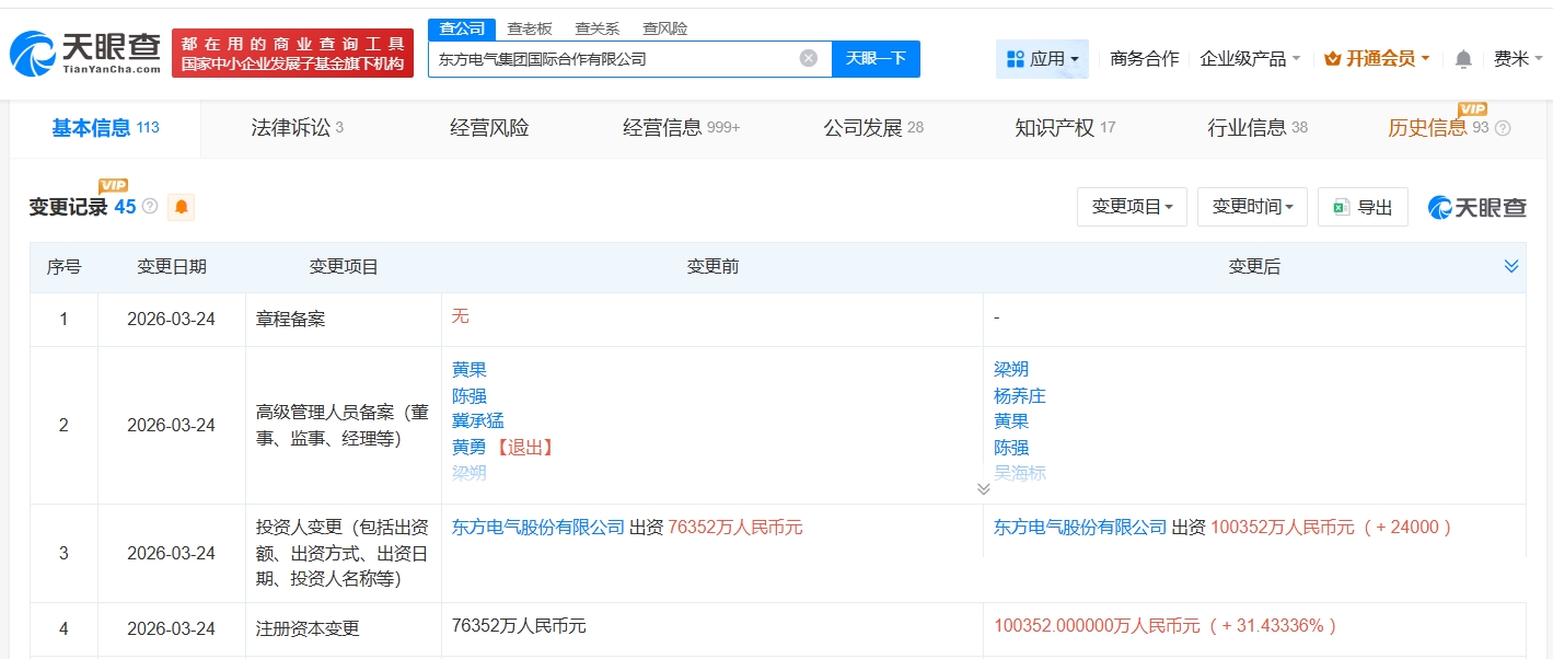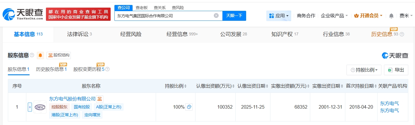 东方电气集团国际合作公司增资至10亿