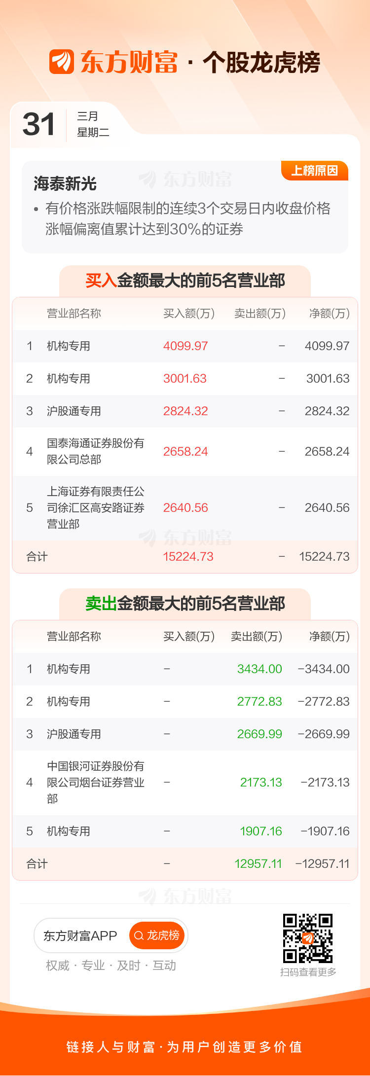 海泰新光(688677)龙虎榜数据(03-31)