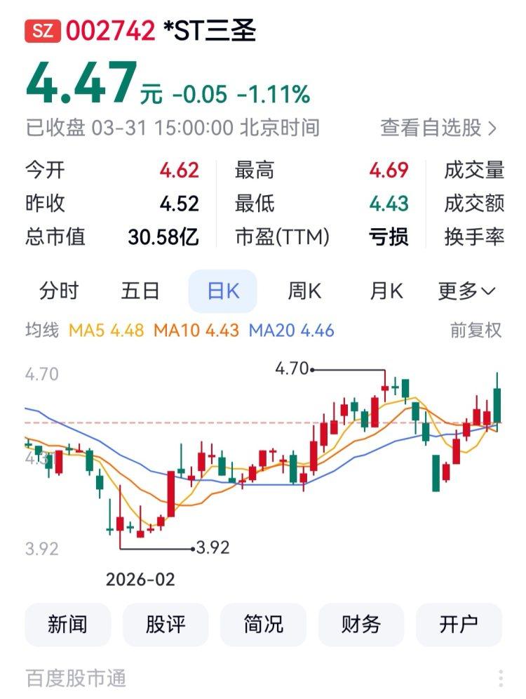*ST三圣还披露2025年报,实现营业收入约9.00亿元,归母净利润-4.20亿元,扣非后归母净利润为-5.10亿元,归母净资产为1.68亿元,同比由负转正。