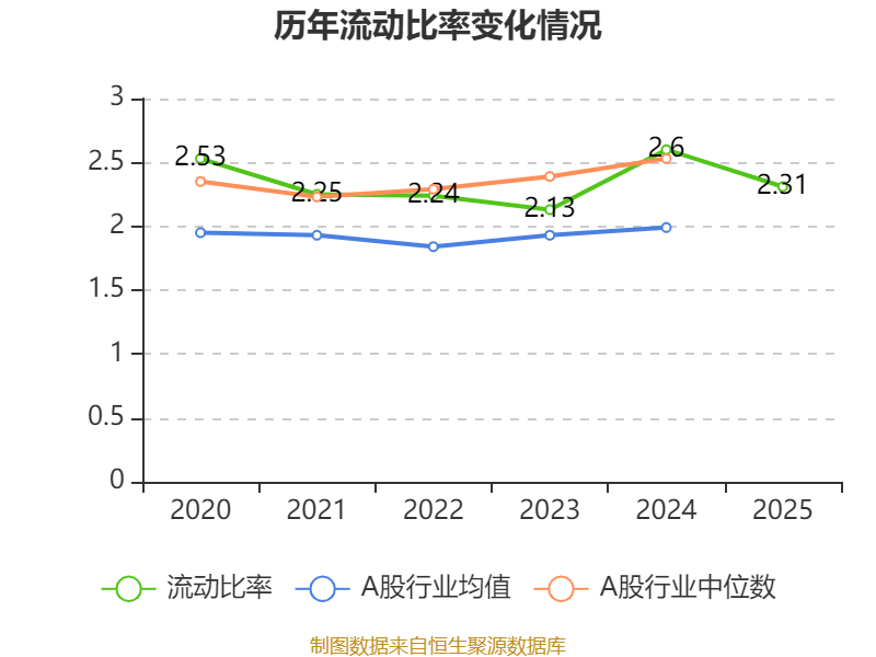2025年,公司流动比率为2.31,速动比率为1.19。