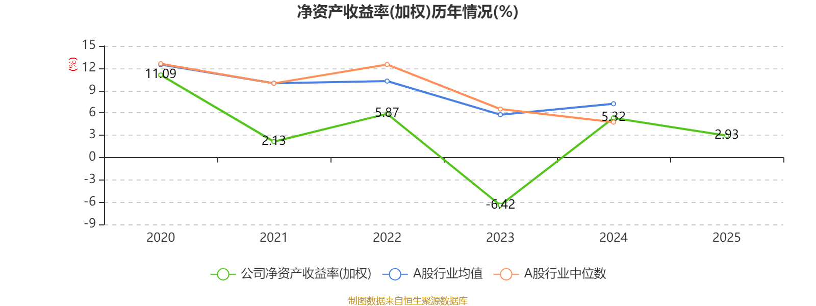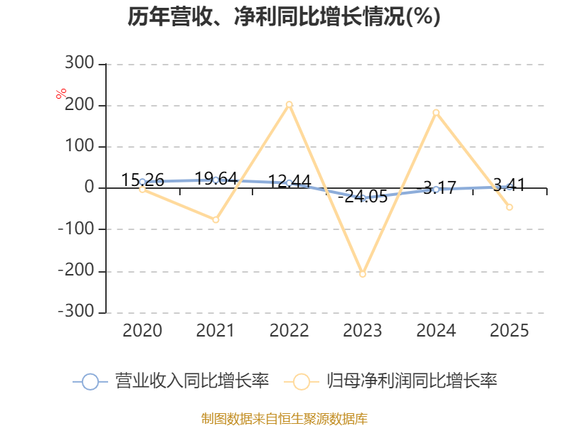 数据显示,2025年公司平均净资产收益率为2.93%,较上年同期下降2.39个百分点。
