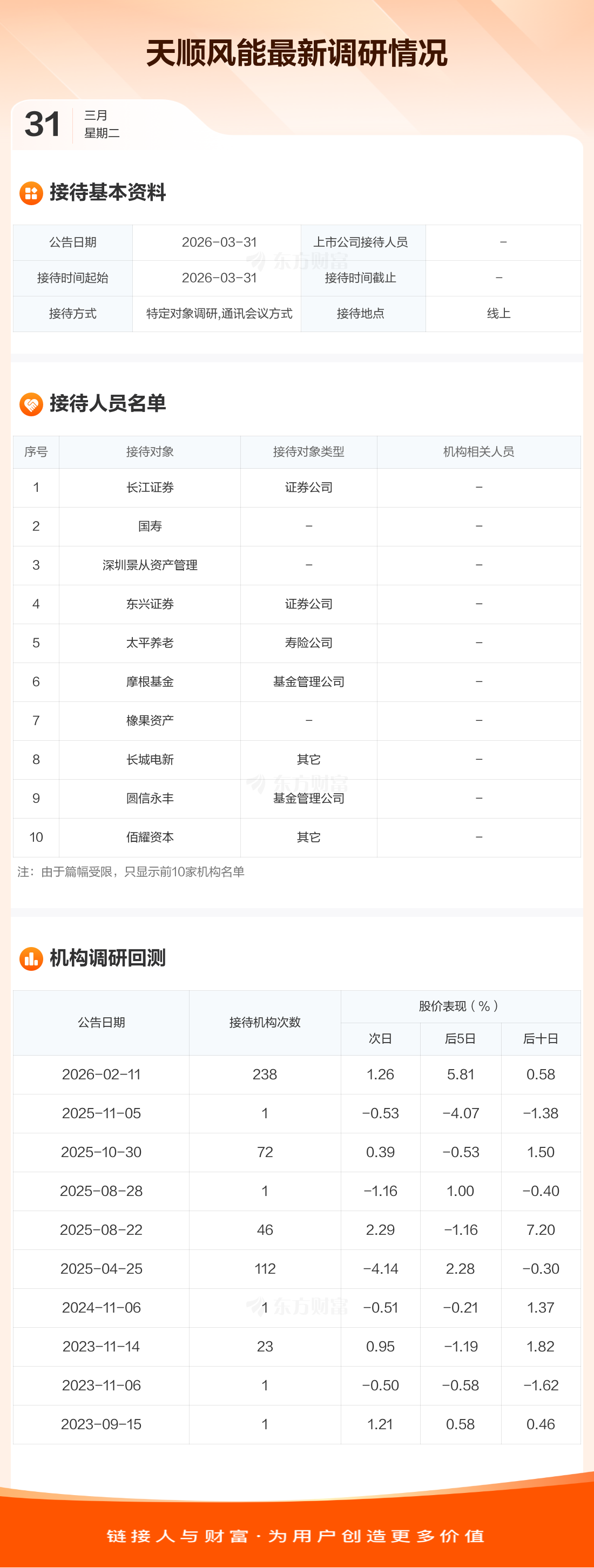 天顺风能3月31日公告称,3月31日接待长江证券等141家机构调研。