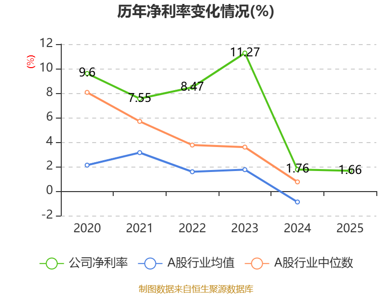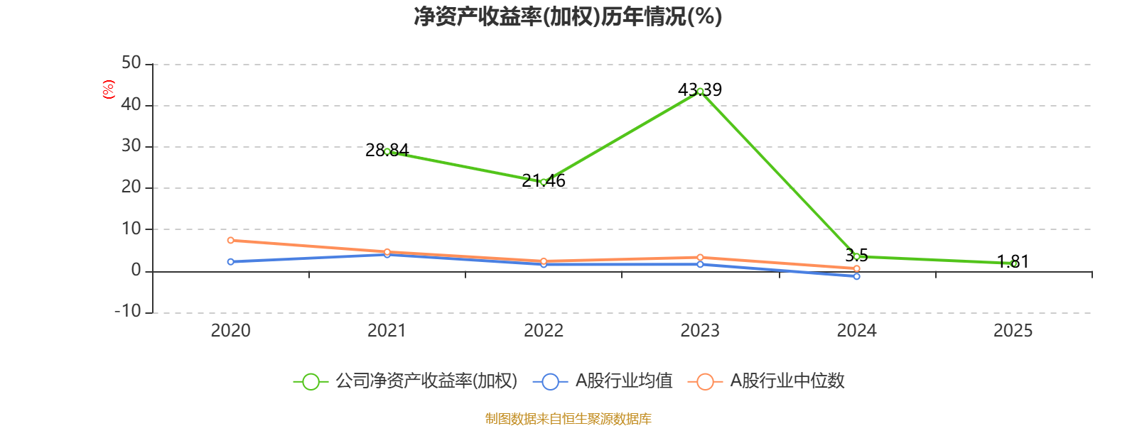 数据显示,2025年公司平均净资产收益率为1.81%,较上年同期下降1.69个百分点。