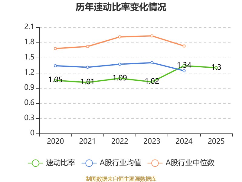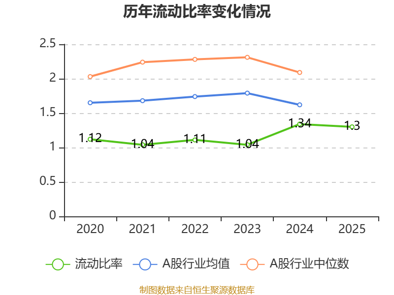 2025年,公司流动比率为1.30,速动比率为1.3。