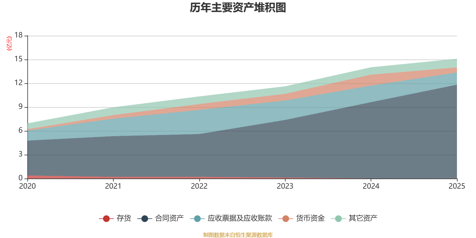 资产重大变化方面,截至2025年末,公司合同资产较上期末增加22.84%,占公司总资产比重上升9.69个百分点;货币资金较上期末减少53.85%,占公司总资产比重下降5.63个百分点;应收票据及应收账款较上期末减少26.09%,占公司总资产比重下降4.67个百分点;递延所得税资产较上期末增加72.05%,占公司总资产比重上升1.04个百分点。