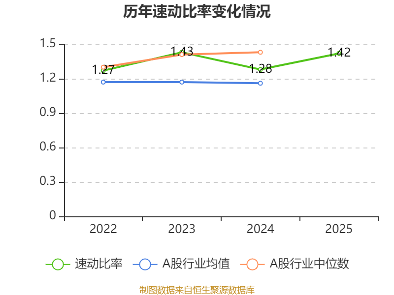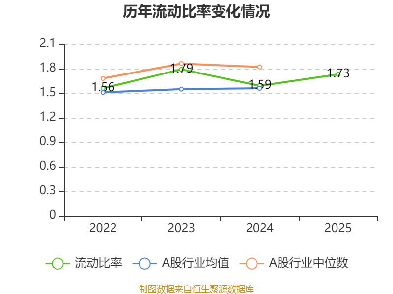 2025年,公司流动比率为1.73,速动比率为1.42。