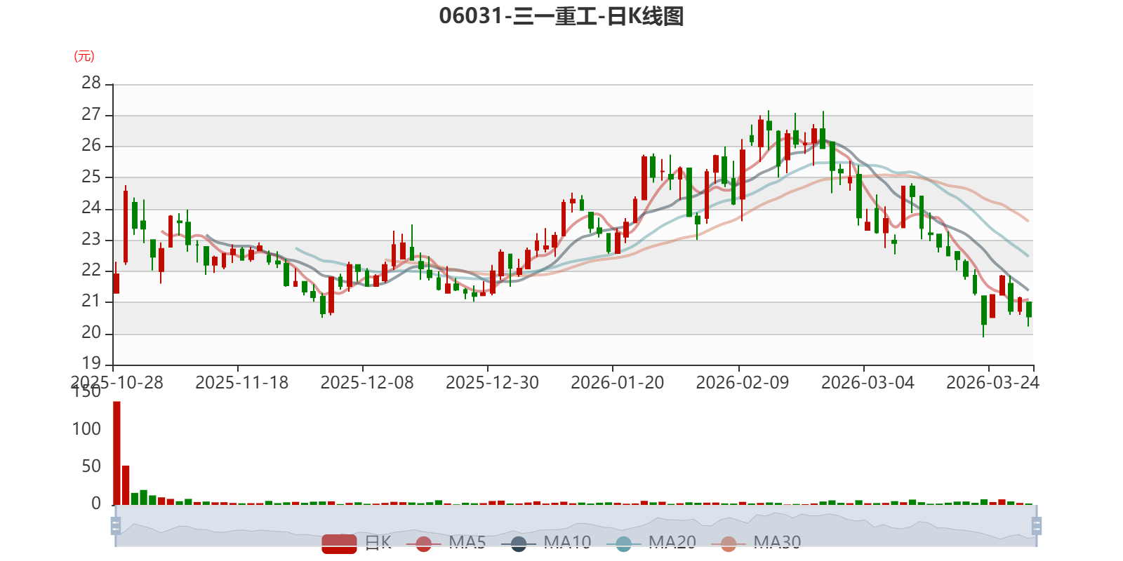 以3月30日收盘价计算,三一重工目前市盈率(TTM)约20.92倍,市净率(TTM)约2.35倍,市销率(TTM)约1.9倍。
