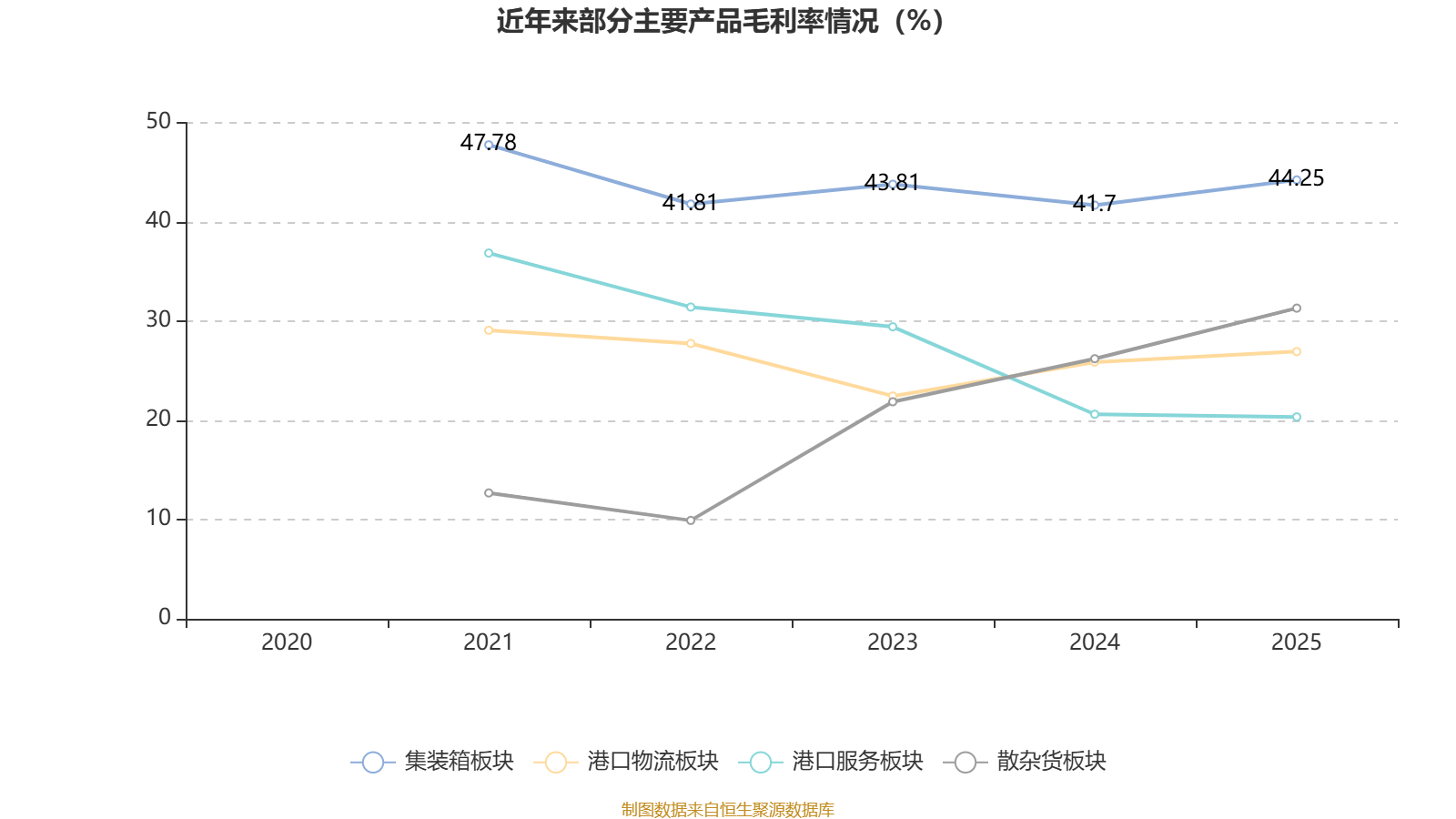资料显示,公司主要从事港口相关业务,主营业务分为:集装箱板块、散杂货板块、港口物流板块和港口服务板块。