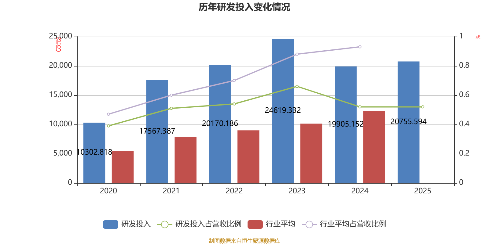 2025年全年,公司研发投入金额为2.08亿元,同比增长4.27%;研发投入占营业收入比例为0.52%,相比上年同期持平。此外,公司全年研发投入资本化率为10.52%。