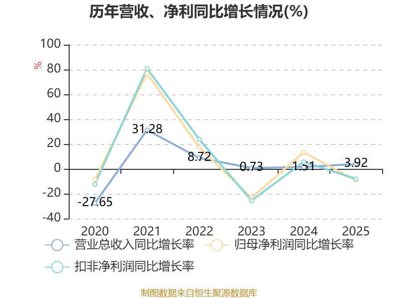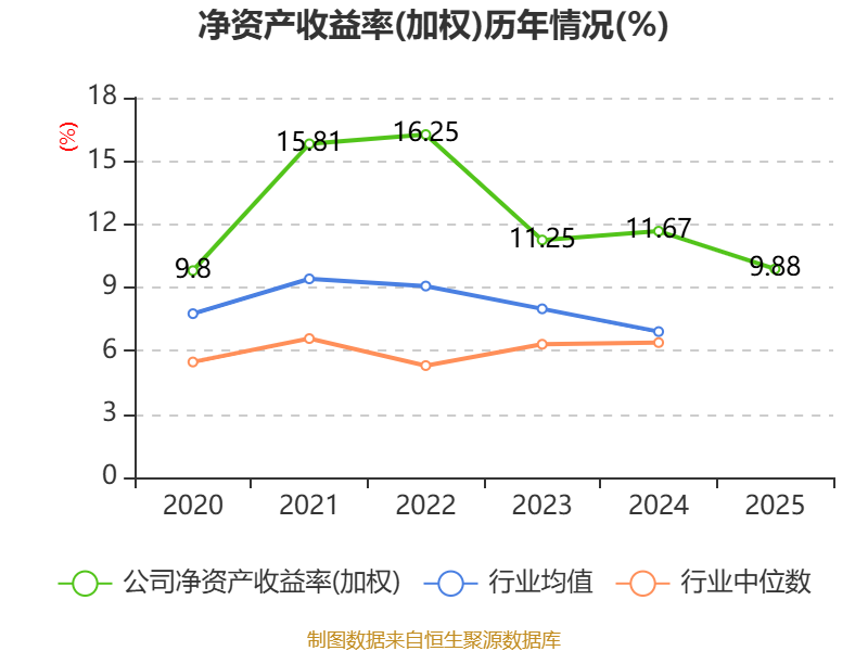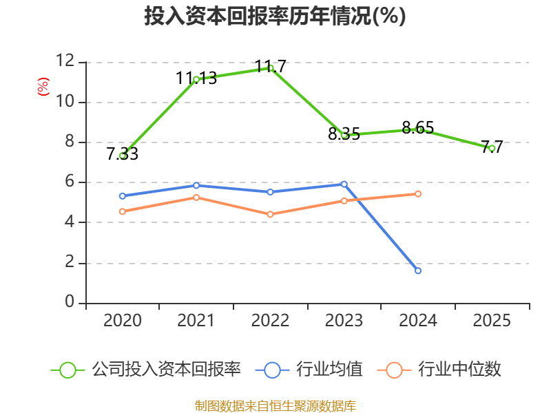 数据显示,2025年公司加权平均净资产收益率为9.88%,较上年同期下降1.79个百分点。公司2025年投入资本回报率为7.7%,较上年同期下降0.95个百分点。