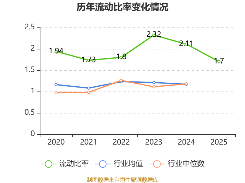 2025年,公司流动比率为1.7,速动比率为1.47。