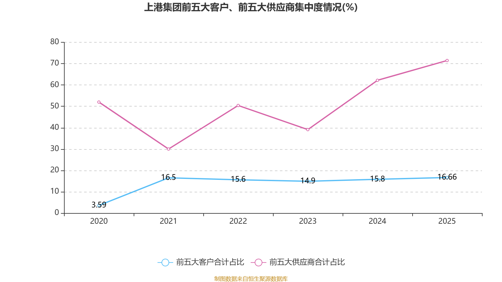 中证智能财讯上港集团(600018)4月1日披露2025年年度报告。2025年,公司实现营业总收入396.11亿元,同比增长3.92%;归母净利润135.65亿元,同比下降9.29%;扣非净利润122.01亿元,同比下降8.10%;经营活动产生的现金流量净额为118.03亿元,同比增长28.00%;报告期内,上港集团基本每股收益为0.5837元,加权平均净资产收益率为9.88%。公司2025年度分配预案为:拟向全体股东每10股派现1.45元(含税)。