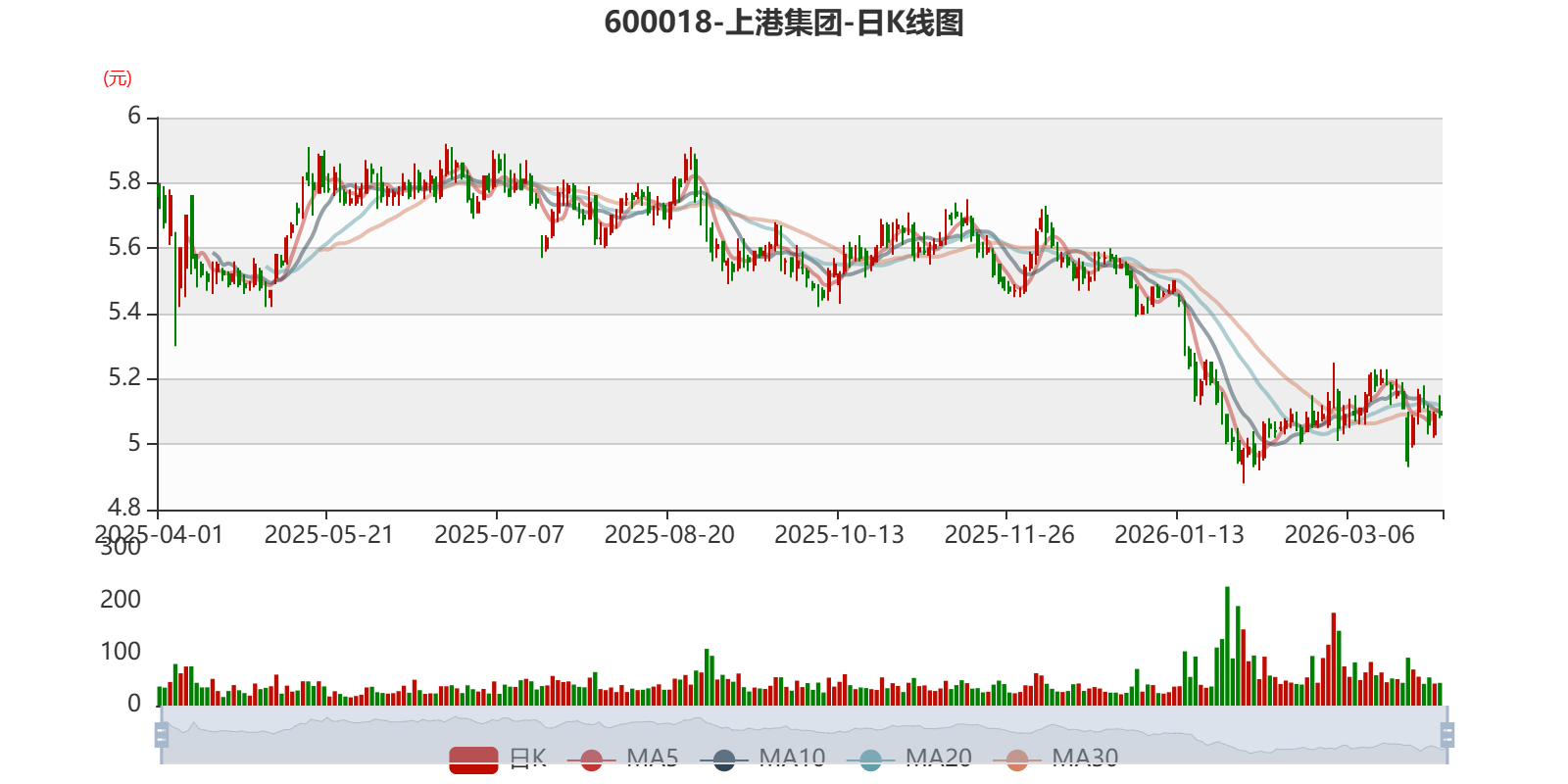 以3月31日收盘价计算,上港集团目前市盈率(TTM)约为8.74倍,市净率(LF)约0.84倍,市销率(TTM)约2.99倍。