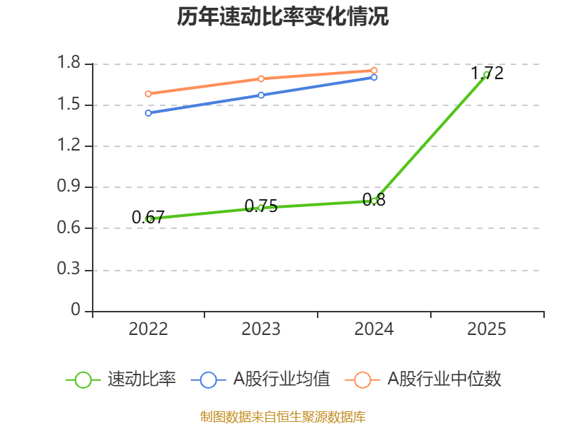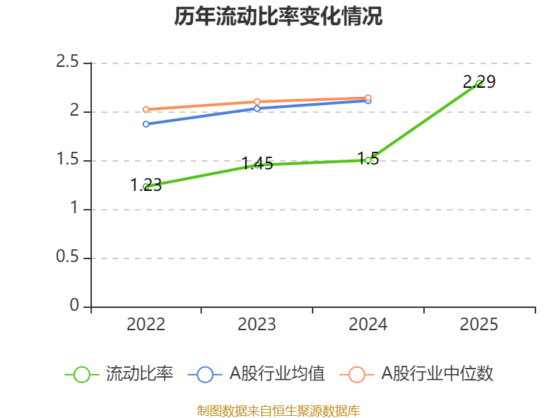 2025年,公司流动比率为2.29,速动比率为1.72。