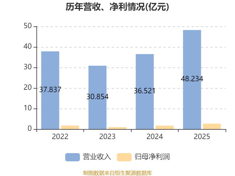 中证智能财讯剑桥科技(06166)3月31日披露2025年度报告。报告期内,公司实现营业收入48.23亿元,同比增长32.07%;归母净利润2.63亿元,同比增长58.08%;经营活动产生的现金流量净额为-4.71亿元,上年同期为5.62亿元;据报告显示,剑桥科技基本每股收益为0.94元,平均净资产收益率为5.43%。
