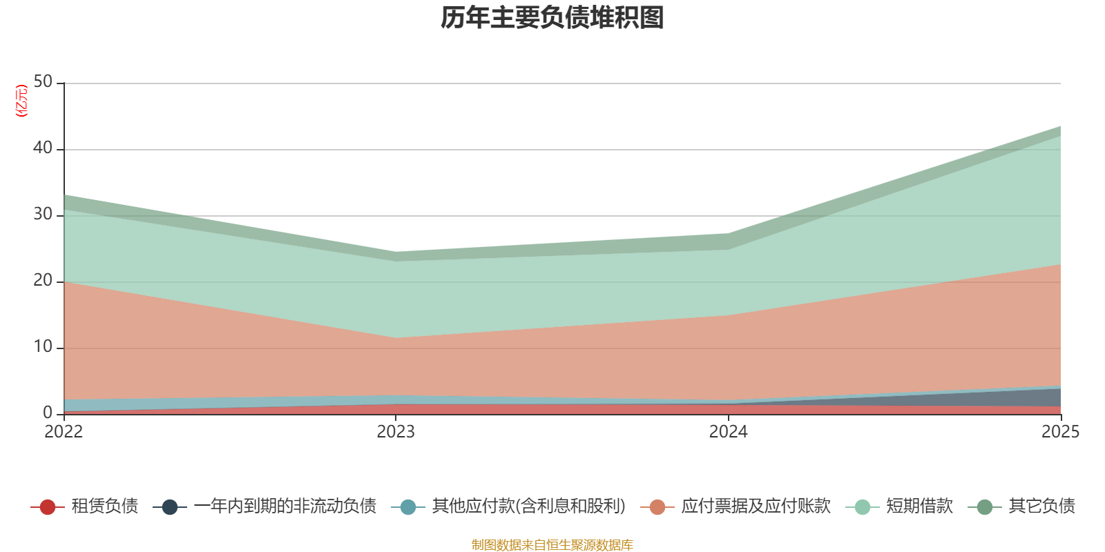 负债重大变化方面,截至2025年末,公司应付票据及应付账款较上期末增加43.15%,占公司总资产比重下降9.26个百分点;短期借款较上期末增加95.63%,占公司总资产比重下降2.82个百分点;一年内到期的非流动负债较上期末增加1228.95%,占公司总资产比重上升1.87个百分点;长期借款较上期末减少100%,占公司总资产比重下降1.77个百分点。