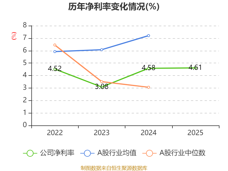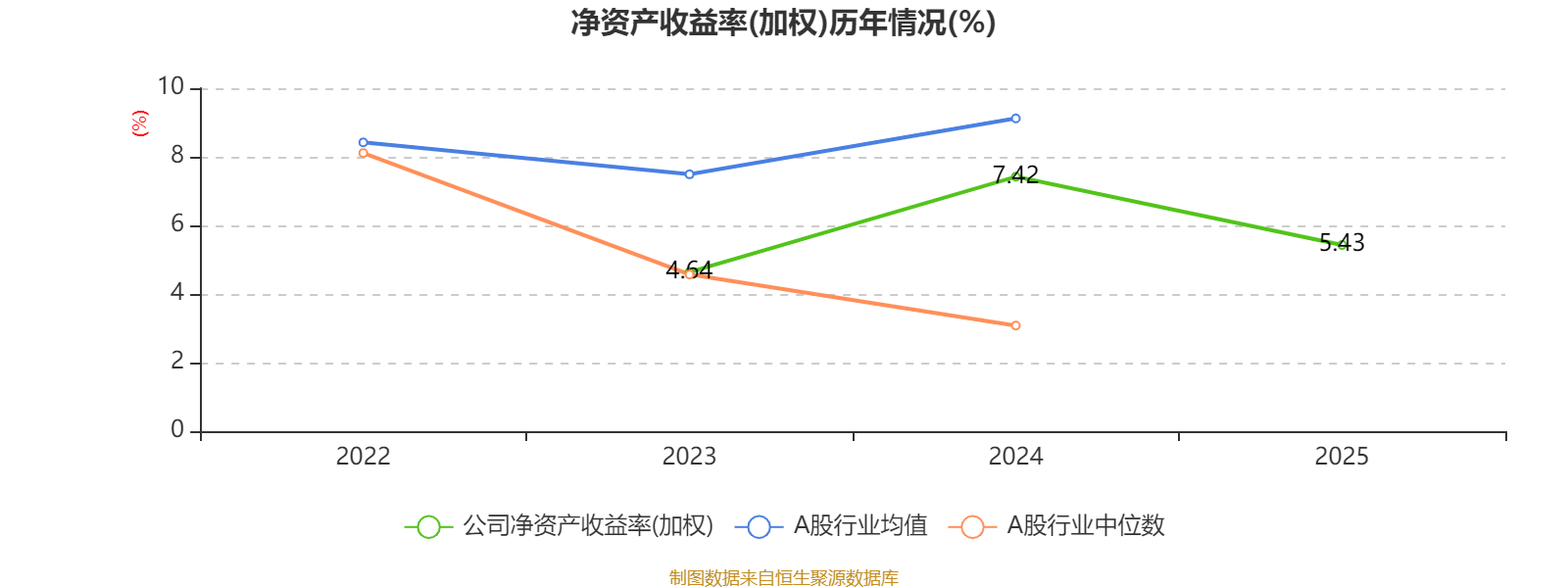 数据显示,2025年公司平均净资产收益率为5.43%,较上年同期下降1.99个百分点。