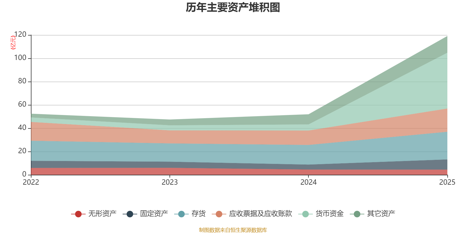 资产重大变化方面,截至2025年末,公司货币资金较上期末增加808.46%,占公司总资产比重上升30.07个百分点;存货较上期末增加40.95%,占公司总资产比重下降12.53个百分点;应收票据及应收账款较上期末增加61.35%,占公司总资产比重下降7.08个百分点;无形资产较上期末减少2.03%,占公司总资产比重下降4.92个百分点。